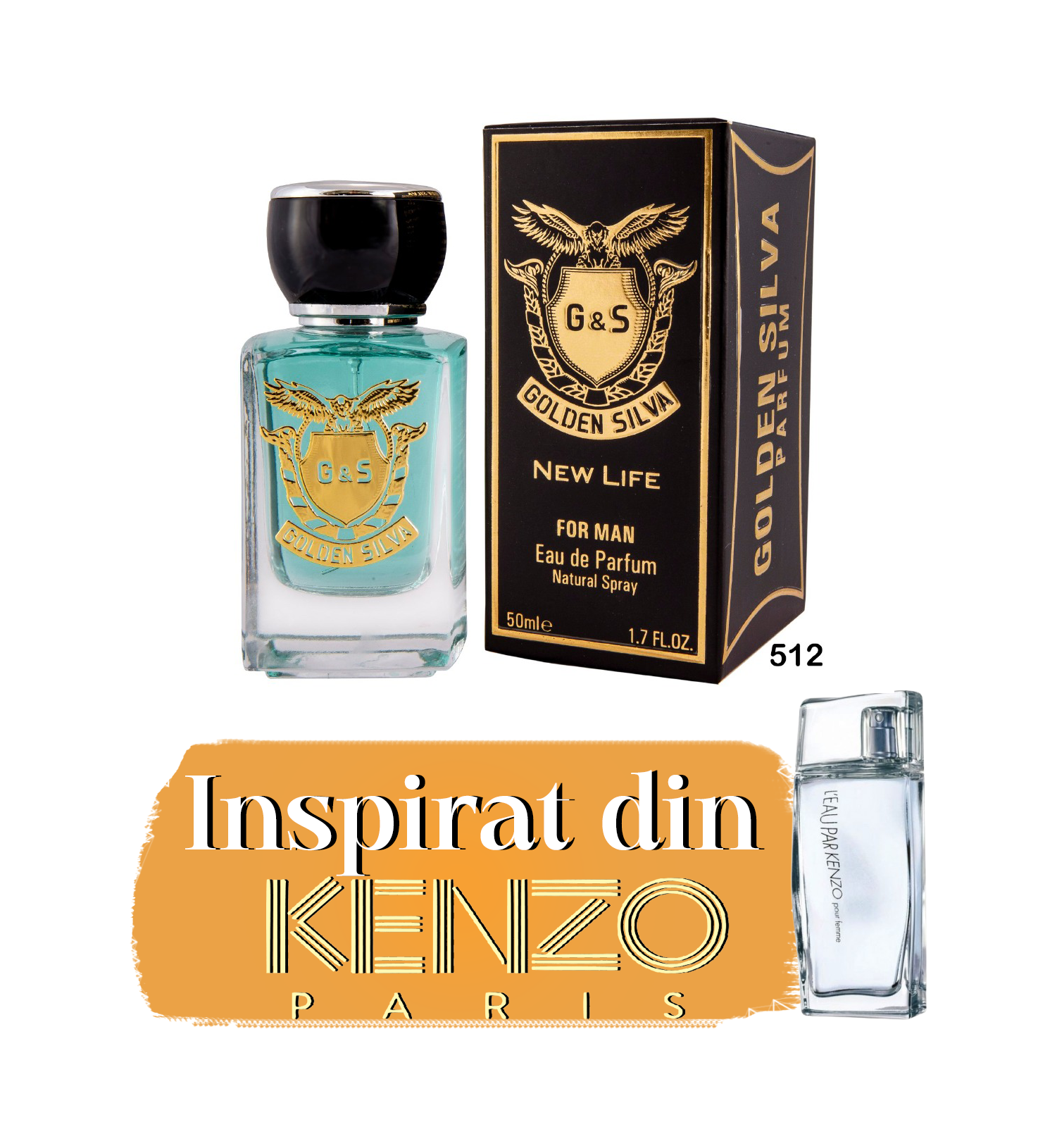 Golden Silva M512 inspirat de Kenzo L’eau pour Homme, este un parfum Lemnos de barbati. Notele de varf sunt yuzu, notele de mijoloc sunt lotus, absolut de vanilie, iar notele de baza sunt cedru.