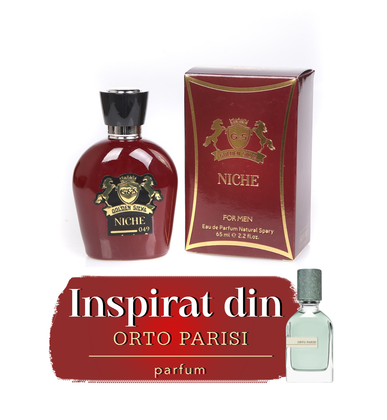 Golden Silva Niche 049 inspirat de Orto Parisi Megamare, este un parfum Aromatic Acvatic unisex. Notele de varf sunt bergamota, lamaie, notele de mijloc sunt calon, hedione, alge marine, iar notele de baza sunt ambroxan, cedru, mosc.